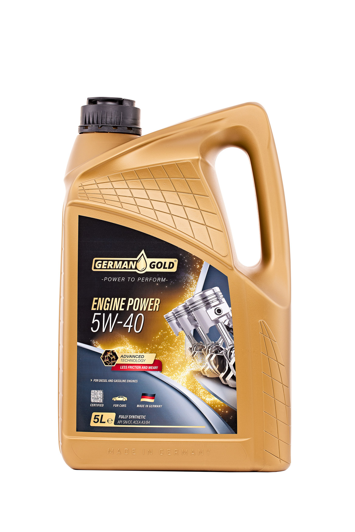German Gold Engine Power 5W-40 — энергосберегающее моторное масло для всесезонного использования, идеально подходящее для всех современных бензиновых и дизельных двигателей автомобилей.